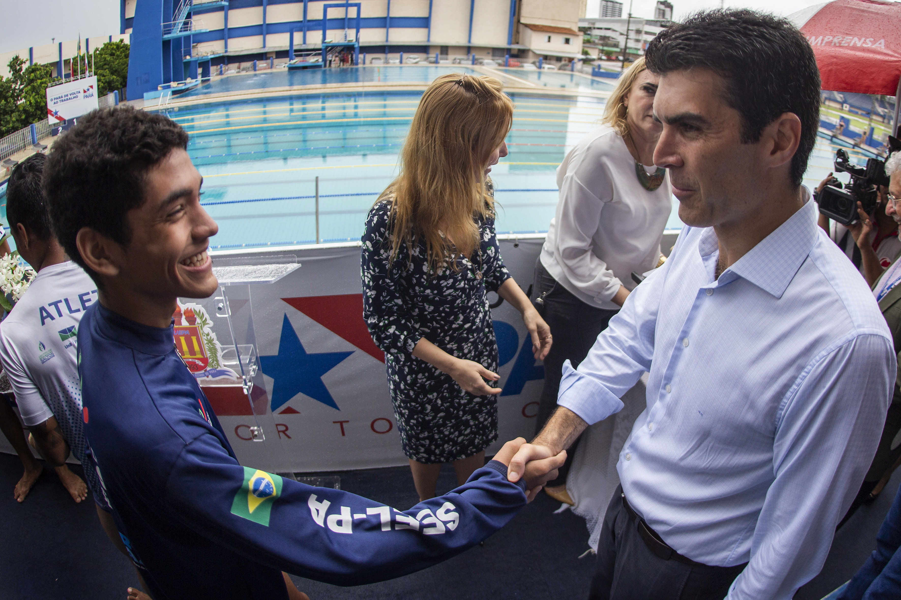 A cerimônia contou com a participação do governador do Estado do Pará, Helder Barbalho, do vice-prefeito de Belém, Orlando Reis, e do reitor da Uepa, Rubens Cardoso, para o descerramento da placa e premiação de alguns atletas que se apresentaram. “Estamos colocando o Parque Aquático à disposição dos paraenses com a vontade de que ele seja um berço de novos atletas e profissionais, além de um espaço de lazer para as comunidades e famílias do nosso Estado”, afirmou o governador do Estado, Helder Barbalho.