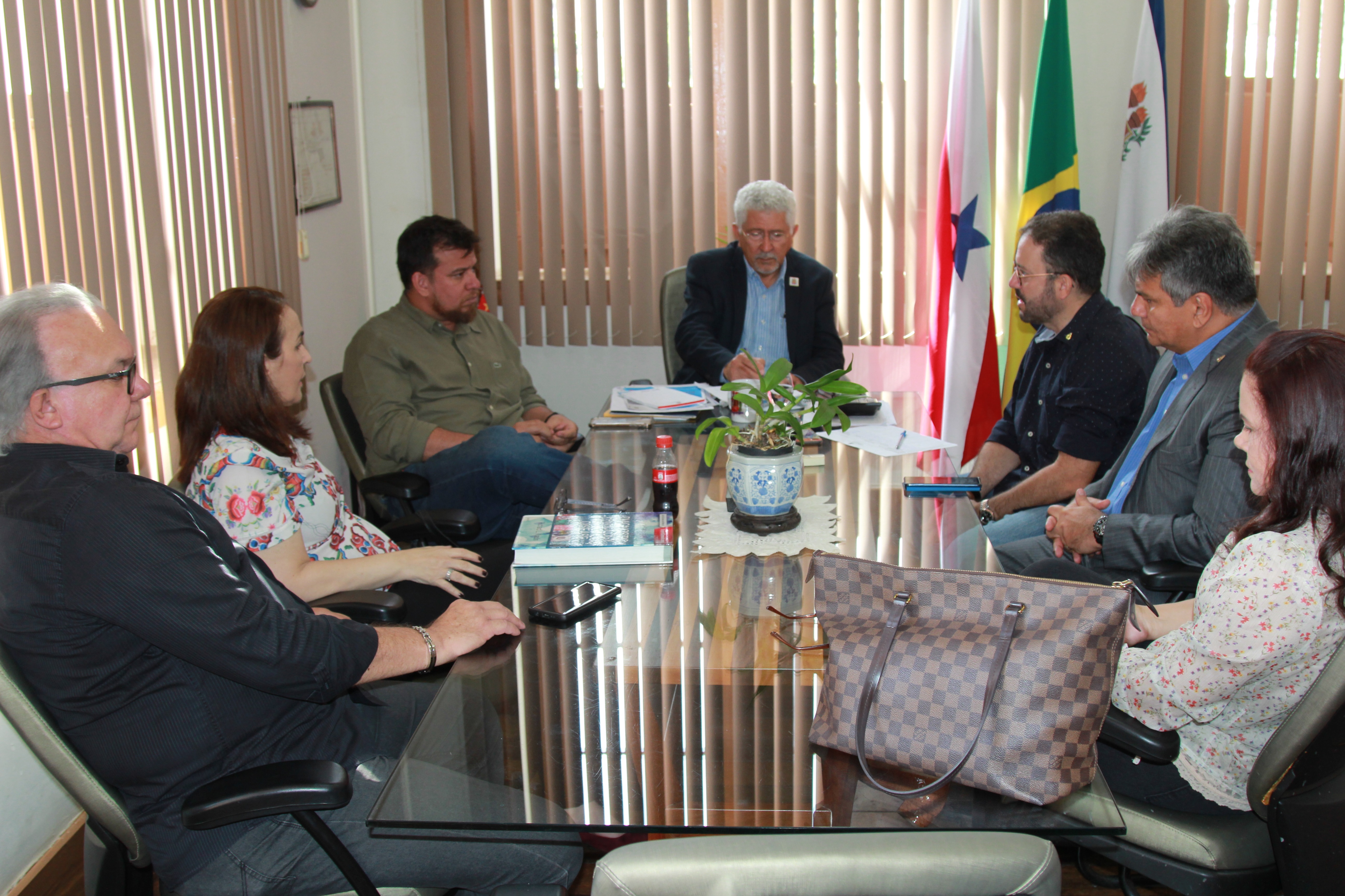 O reitor da Universidade do Estado do Pará (Uepa), professor Rubens Cardoso, a pró-reitora de Extensão, Alba Lúcia Raithy, a diretora do Centro de Ciências Biológicas e da Saúde (CCBS), Vera Palácios, a coordenadora da Comissão de Residência Médica da Uepa (Coreme), Regina Carneiro e o coordenador da Diretoria do Círio, Albano Martins, reuniram-se ontem, 17 de dezembro, para discutir formas de ampliar a participação da Uepa no Círio 2020.